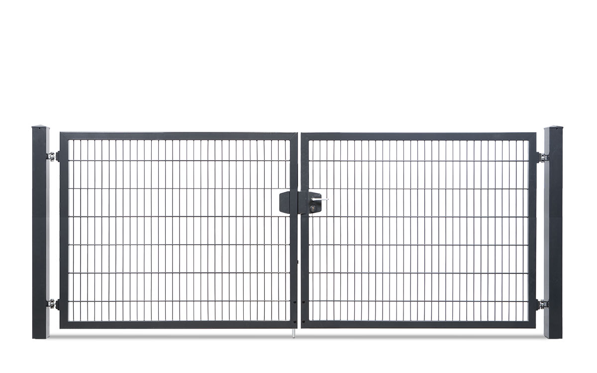 Das zweiflügelige Einfahrtstor VARIO trend lässt Sie die Öffnungsrichtung nach DIN links und rechts durch entsprechende Pfostenmontage bestimmen. Das variable Einfahrtstor kommt als Komplettpaket mit Doppelstabfüllung von 8/6/8mm, einem Rahmen von 60/40 mm und den zugehörigen Torpfosten je nach Höhe des Tores von 60/60 mm oder 80/80 mm zu Ihnen nach Hause. Aus zahlreichen Torhöhen und Torbreiten können Sie das für Sie passende Tor auswählen.