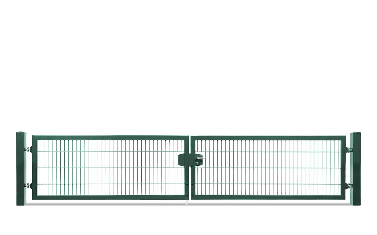 Das zweiflügelige Einfahrtstor VARIO trend lässt Sie die Öffnungsrichtung nach DIN links und rechts durch entsprechende Pfostenmontage bestimmen. Das variable Einfahrtstor kommt als Komplettpaket mit Doppelstabfüllung von 8/6/8mm, einem Rahmen von 60/40 mm und den zugehörigen Torpfosten je nach Höhe des Tores von 60/60 mm oder 80/80 mm zu Ihnen nach Hause. Aus zahlreichen Torhöhen und Torbreiten können Sie das für Sie passende Tor auswählen.