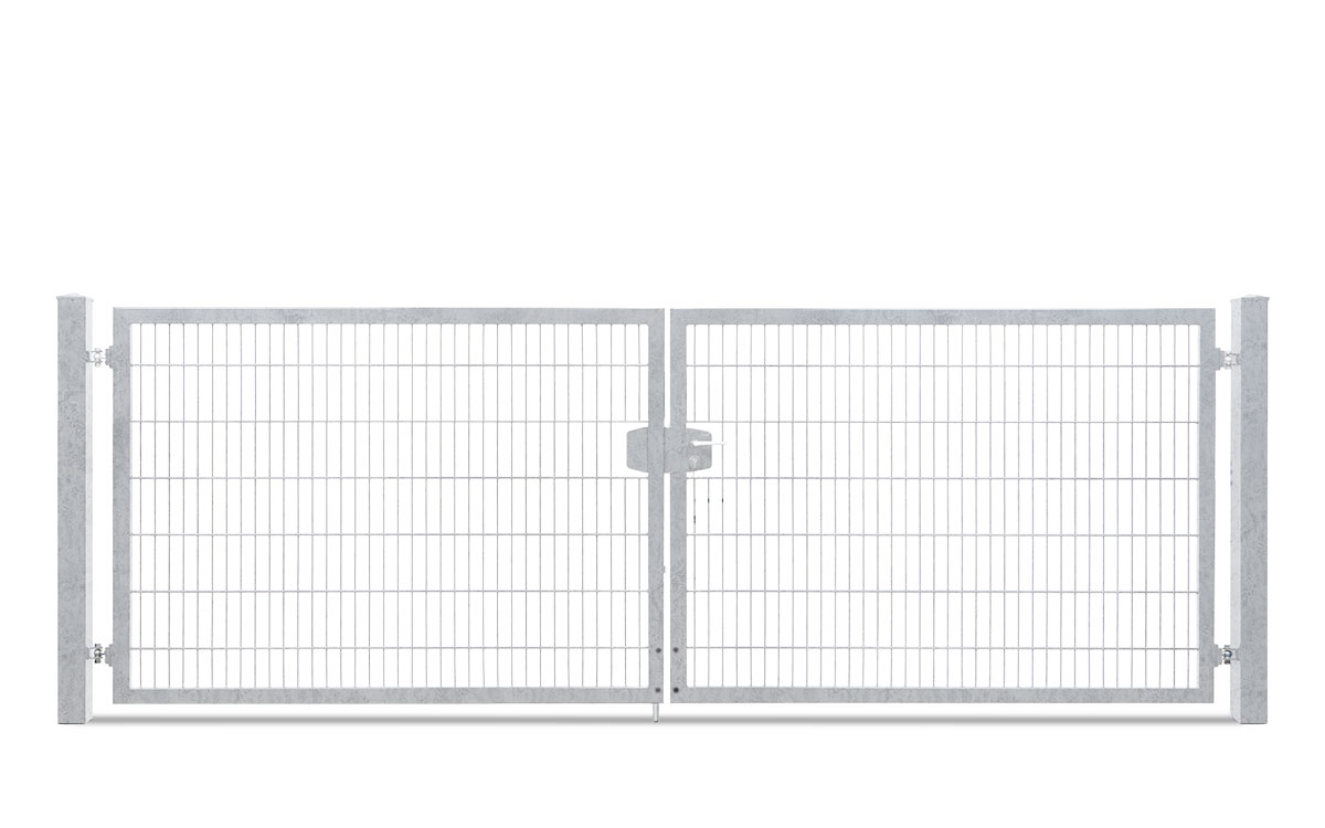 Das zweiflügelige Einfahrtstor VARIO trend lässt Sie die Öffnungsrichtung nach DIN links und rechts durch entsprechende Pfostenmontage bestimmen. Das variable Einfahrtstor kommt als Komplettpaket mit Doppelstabfüllung von 8/6/8mm, einem Rahmen von 60/40 mm und den zugehörigen Torpfosten je nach Höhe des Tores von 60/60 mm oder 80/80 mm zu Ihnen nach Hause. Aus zahlreichen Torhöhen und Torbreiten können Sie das für Sie passende Tor auswählen.