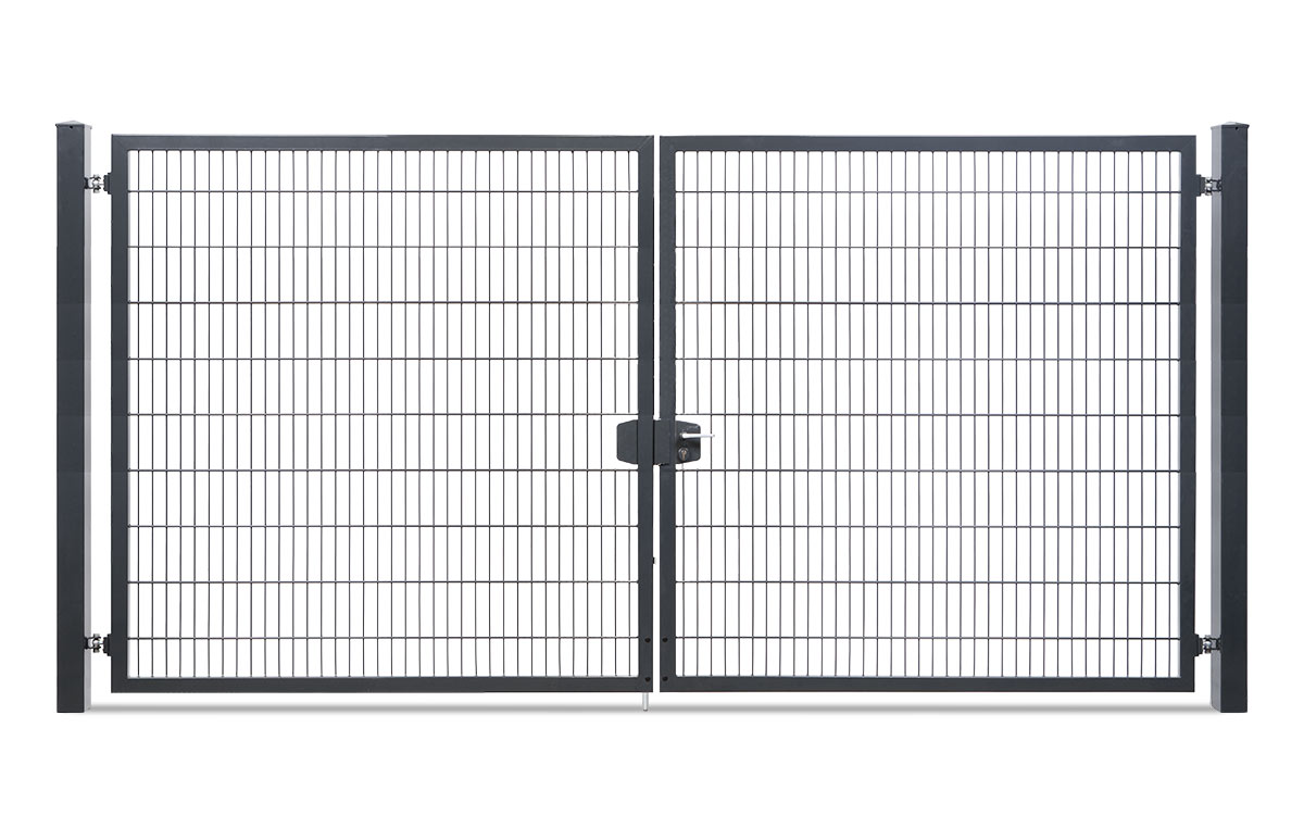 Das zweiflügelige Einfahrtstor VARIO trend lässt Sie die Öffnungsrichtung nach DIN links und rechts durch entsprechende Pfostenmontage bestimmen. Das variable Einfahrtstor kommt als Komplettpaket mit Doppelstabfüllung von 8/6/8mm, einem Rahmen von 60/40 mm und den zugehörigen Torpfosten je nach Höhe des Tores von 60/60 mm oder 80/80 mm zu Ihnen nach Hause. Aus zahlreichen Torhöhen und Torbreiten können Sie das für Sie passende Tor auswählen.