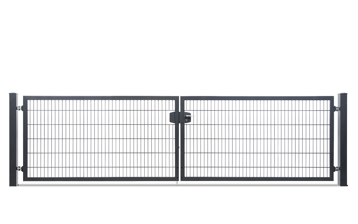 Das zweiflügelige Einfahrtstor VARIO trend lässt Sie die Öffnungsrichtung nach DIN links und rechts durch entsprechende Pfostenmontage bestimmen. Das variable Einfahrtstor kommt als Komplettpaket mit Doppelstabfüllung von 8/6/8mm, einem Rahmen von 60/40 mm und den zugehörigen Torpfosten je nach Höhe des Tores von 60/60 mm oder 80/80 mm zu Ihnen nach Hause. Aus zahlreichen Torhöhen und Torbreiten können Sie das für Sie passende Tor auswählen.