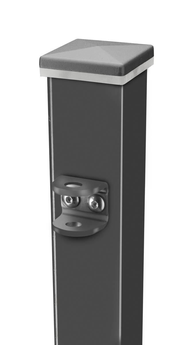 Das einflügelige Drehflügeltor VARIO Trend lässt Sie die Öffnungsrichtung nach DIN links und rechts durch entsprechende Pfostenmontage bestimmen. Der Pfosten switch wird ohne angeschweißte Torlasche und angeschweißte Pfostenkappe geliefert. Der Pfosten ist dank optimierter Produktionsprozesse schnell verfügbar und wird in der Stärke 80x80 mm und in den Pfostenlängen von 1400 bis 2600 mm angeboten. Der Pfosten bietet mehr Flexibilität für die Gestaltung der Toranlage. Zur Wahl stehen alle passenden Pfostenkappen wie z.B. die Aluminium-Abdeckkappen oder auch die trendigen LED Alu- Abdeckkappen, die jetzt bauseits eingeschlagen bzw. montiert werden können.