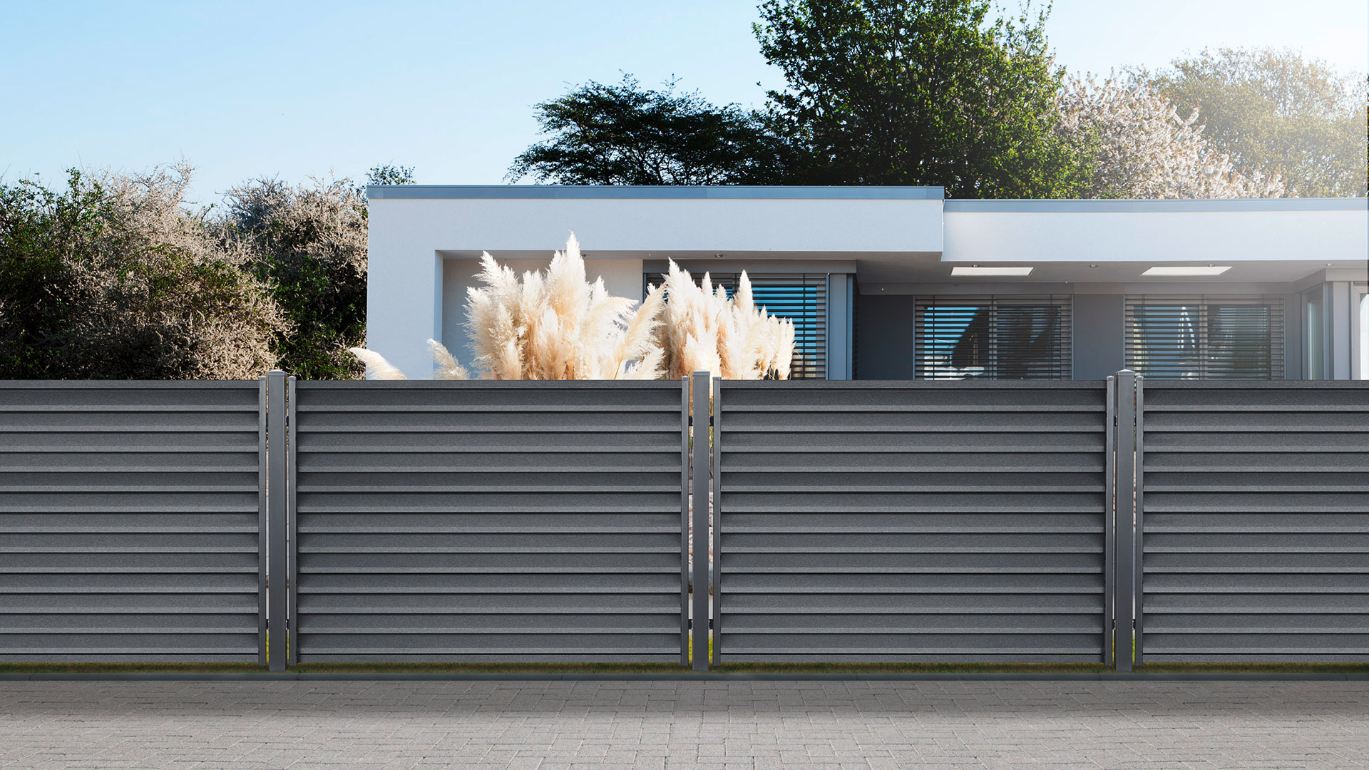 der Designzaun-Zäune BOSTON und MIAMI am Pfosten.