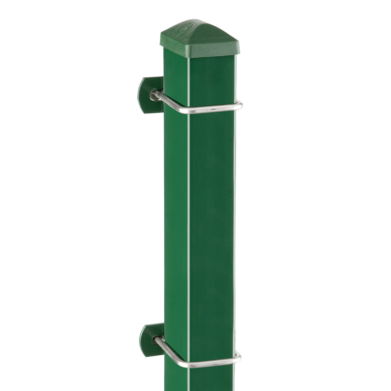 Je nach gewünschter Gittermattenhöhe ist der Pfosten von 1100 mm bis 3000 mm Höhe incl. Bodeneinstand erhältlich. Der U-Pfosten kann sowohl einbetoniert als auch auf Betonplatte montiert werden. Dafür erhalten Sie in unserem Zubehörshop die passenden Fußplatten Adapter. Die Pfosten verfügen über eine Kunststoffkappe.