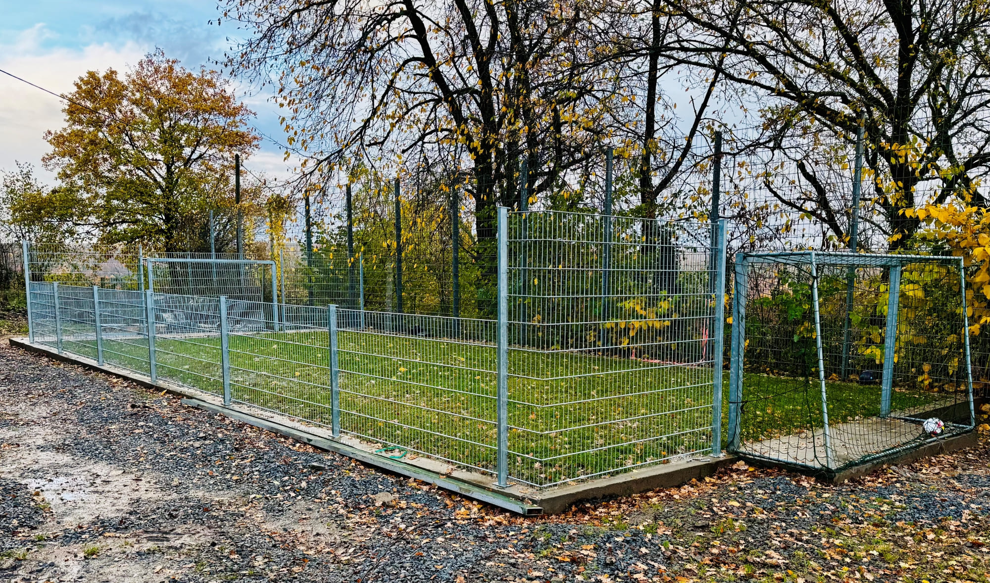 - Hohe Ballfangzäune aus Maschendraht oder Doppelstabmatten